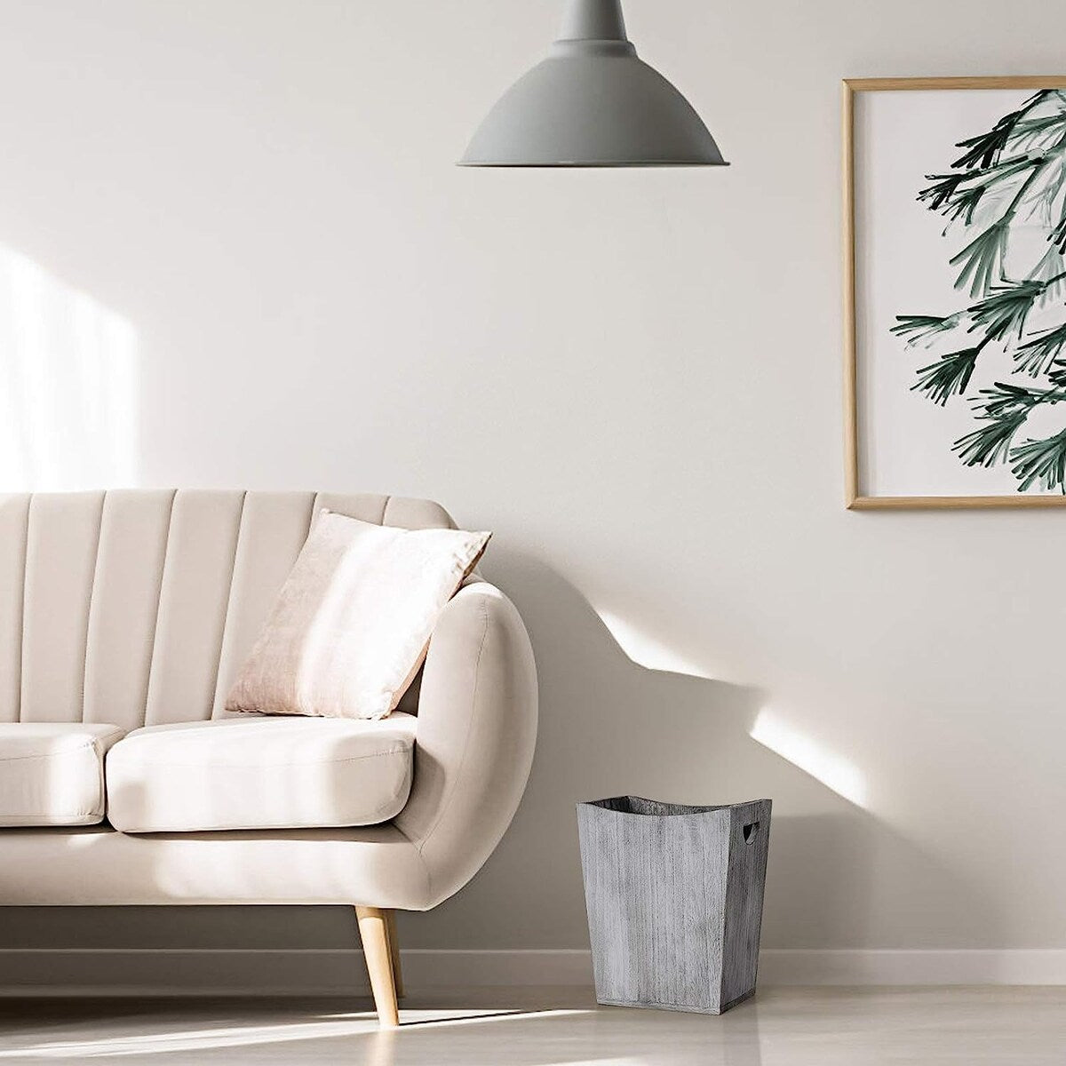 Bring a touch of rustic farmhouse style to your home or office with our Wood Trash Can. Made with real wood, this wastebasket features beautiful natural texture that adds a warm and charming touch to any space. With a portable design that includes double handles, this trashcan is easy to move around and perfect for small spaces. It has a large capacity of 1.5 gallons/5.7 liters and a wide mouth, making it convenient to throw away your garbage. Ideal for use in your office, bathroom, living room, bedroom, powder room, study or any other place where trash cans are needed.