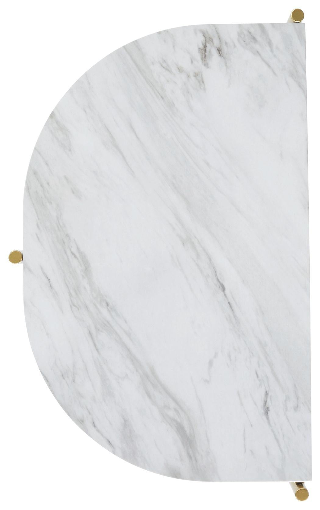 Add a bright spot to your contemporary space with this side table. The replicated Carrara marble top provides a chic sophistication while a goldtone finish on the metal frame heightens the modern aesthetic.