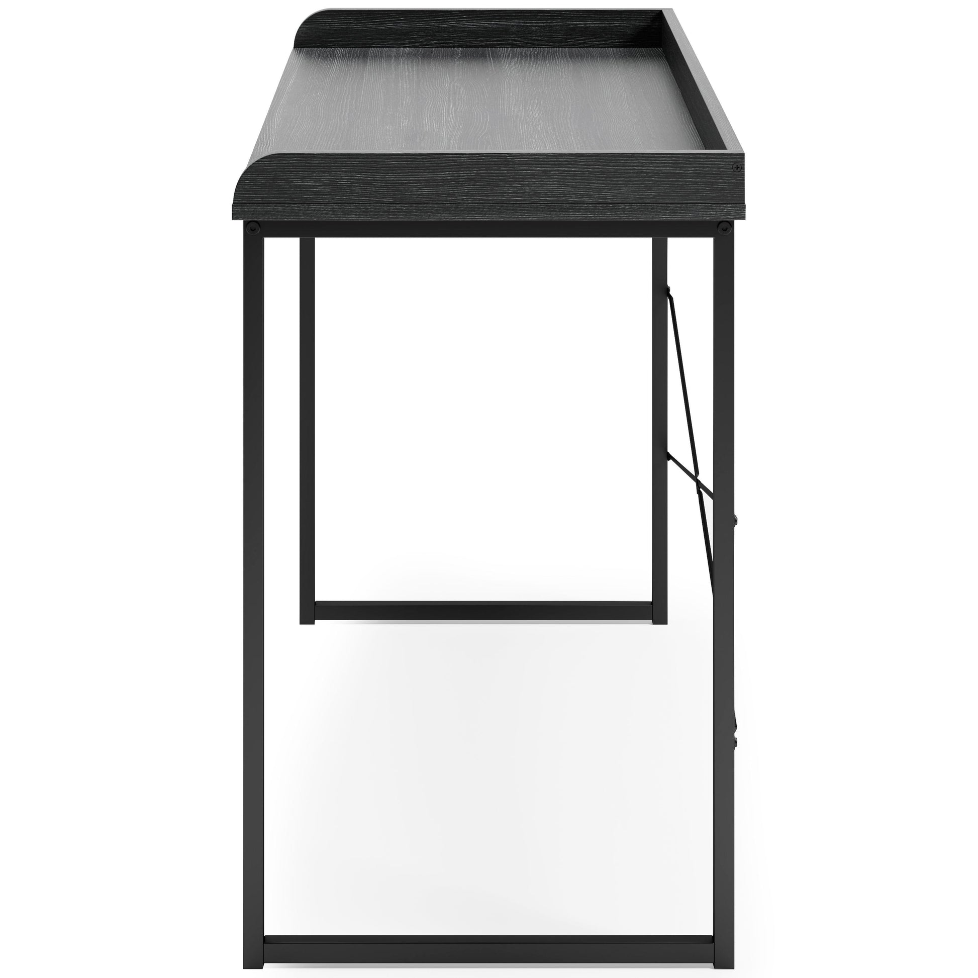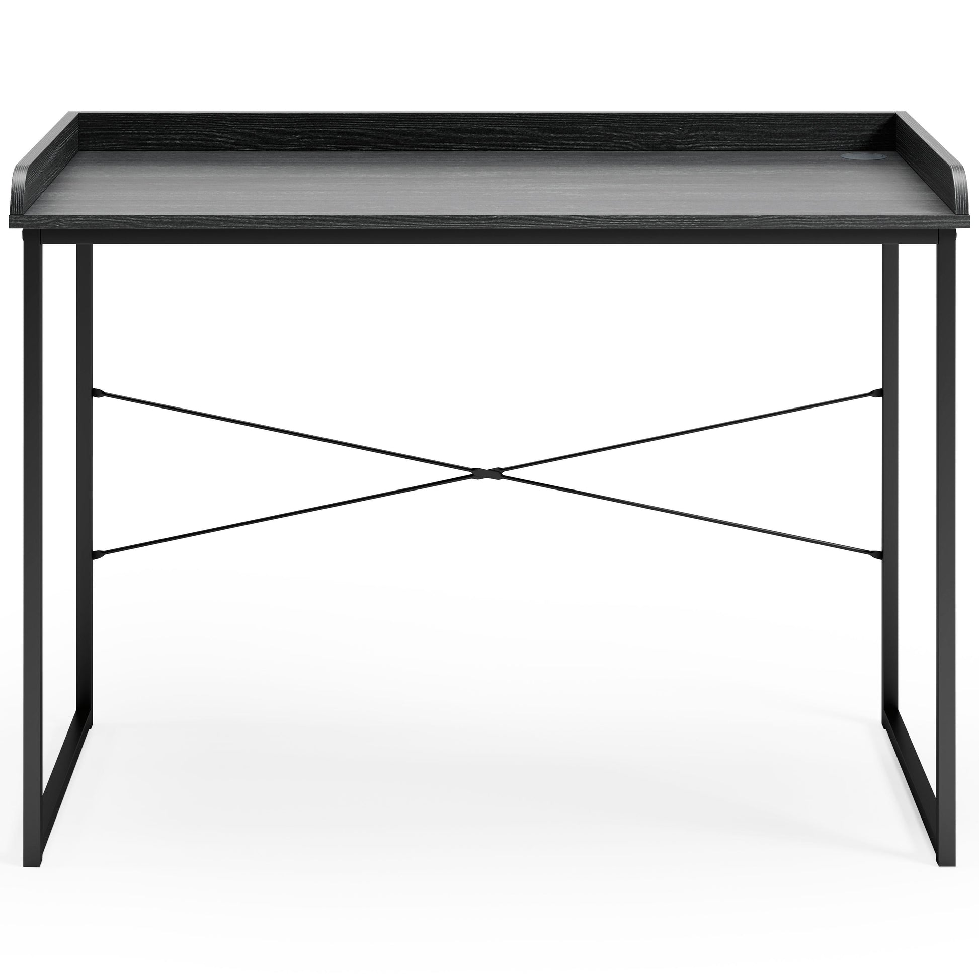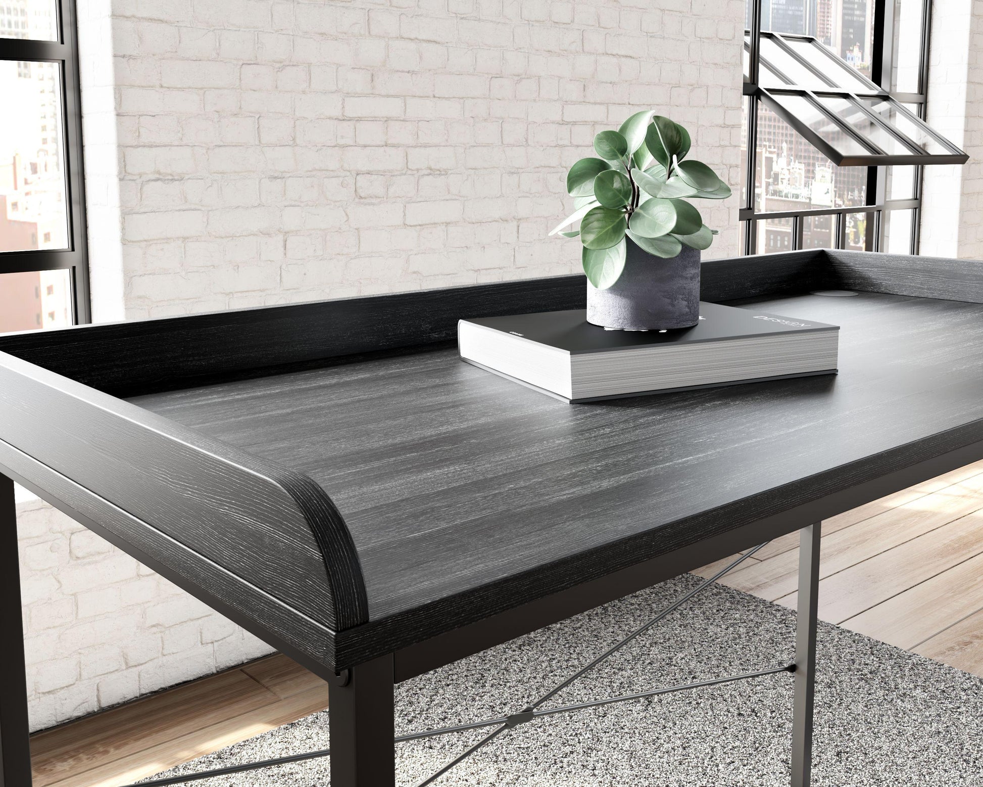 Elevate your home office with this simply sensational home office desk. Pairing a dark wood grain look with tubular black metal base for modern appeal, this minimalistic desk with ample work space is dressed to impress in a no-muss, no-fuss way.