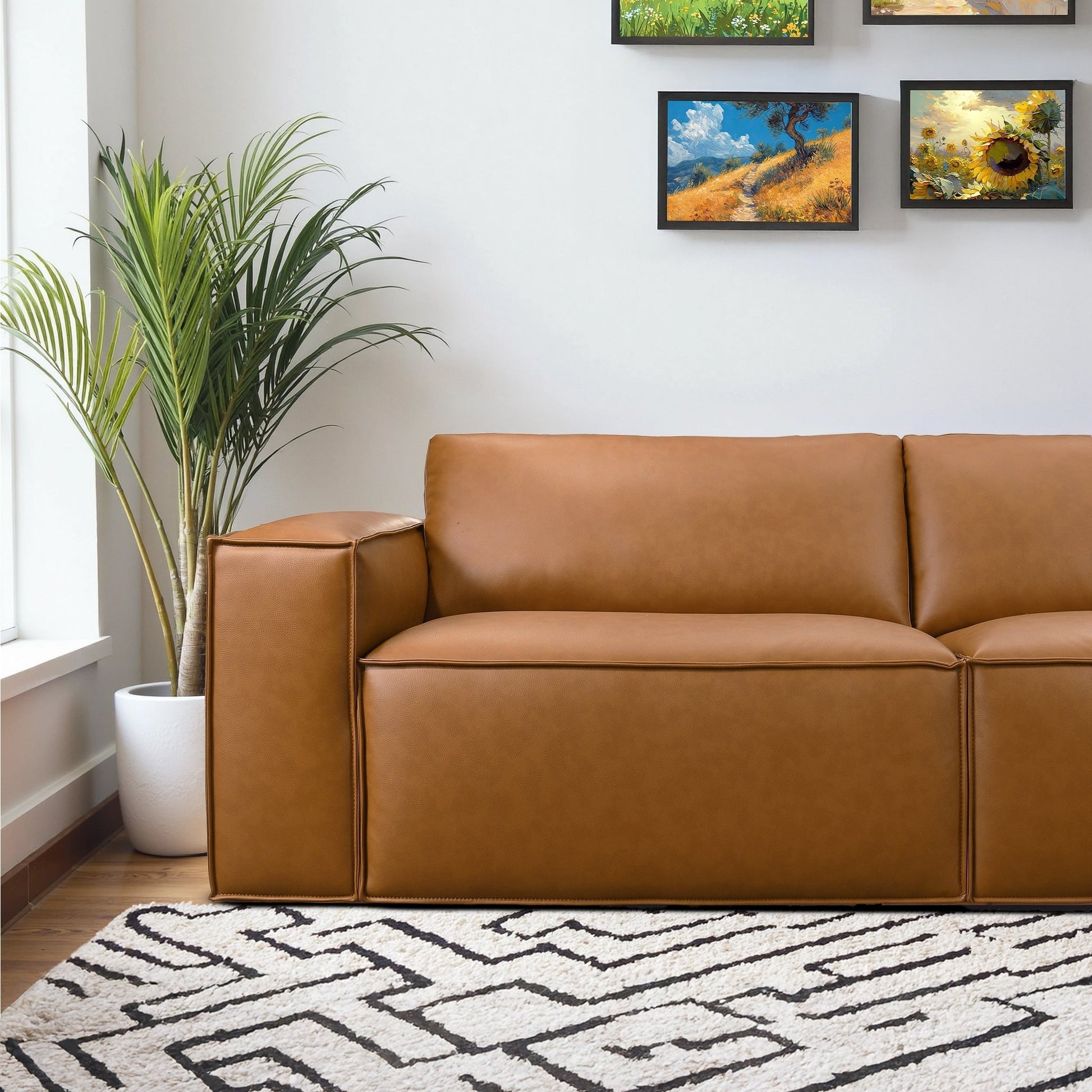 York Mid-Century Modern Vegan Leather Comfortable Sofa