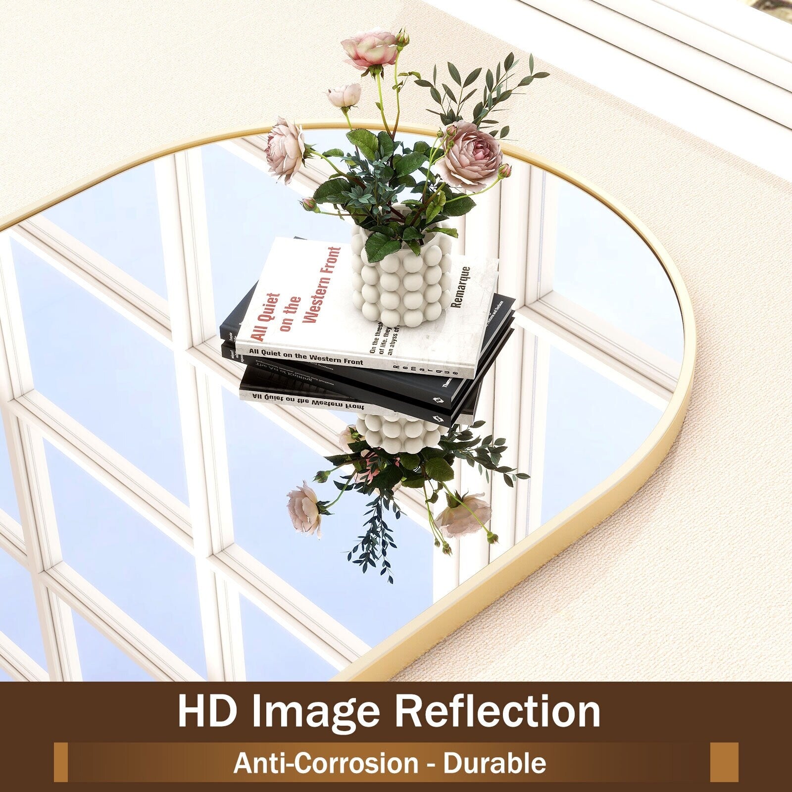 Introducing the YVANLA Arch Bathroom Wall Mounted Vanity Mirror, the perfect addition to any home. This modern and sleek mirror boasts a simple design with an ultra-thin aluminum alloy frame, making it suitable for any room including the bathroom, living room, hallway corridor, and bedroom. Made with high-quality float glass and available in a variety of sizes and colors, this mirror combines convenience with aesthetics to enhance the beauty of your home.