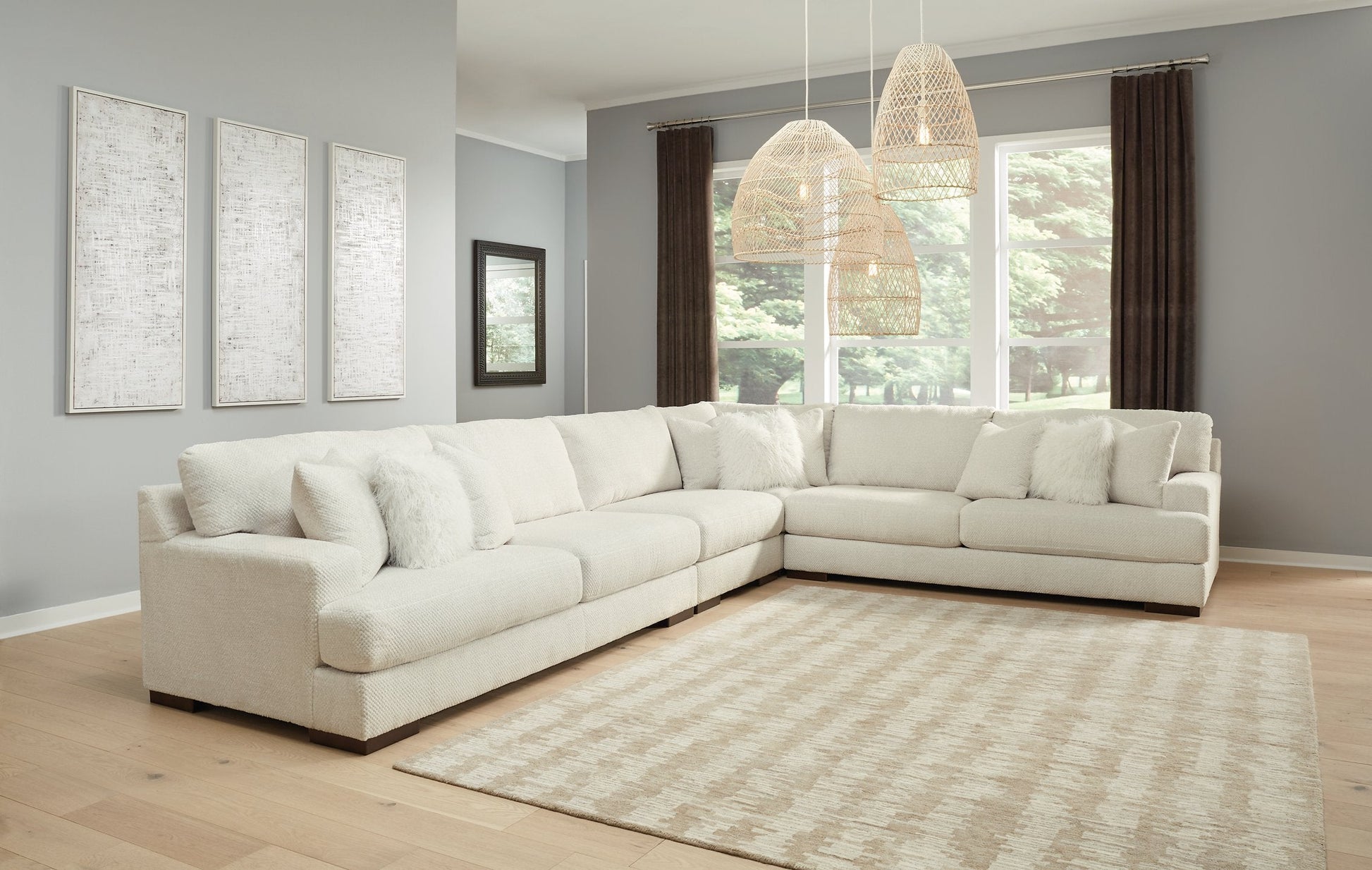 Decadently soft microfiber lends big-time comfort and style to this sectional. A warm, welcoming contemporary design is on full display with its wide track arms and clean lines. Fun faux fur toss pillows bring a bit of glam. A matching faux fur ottoman is available separately.