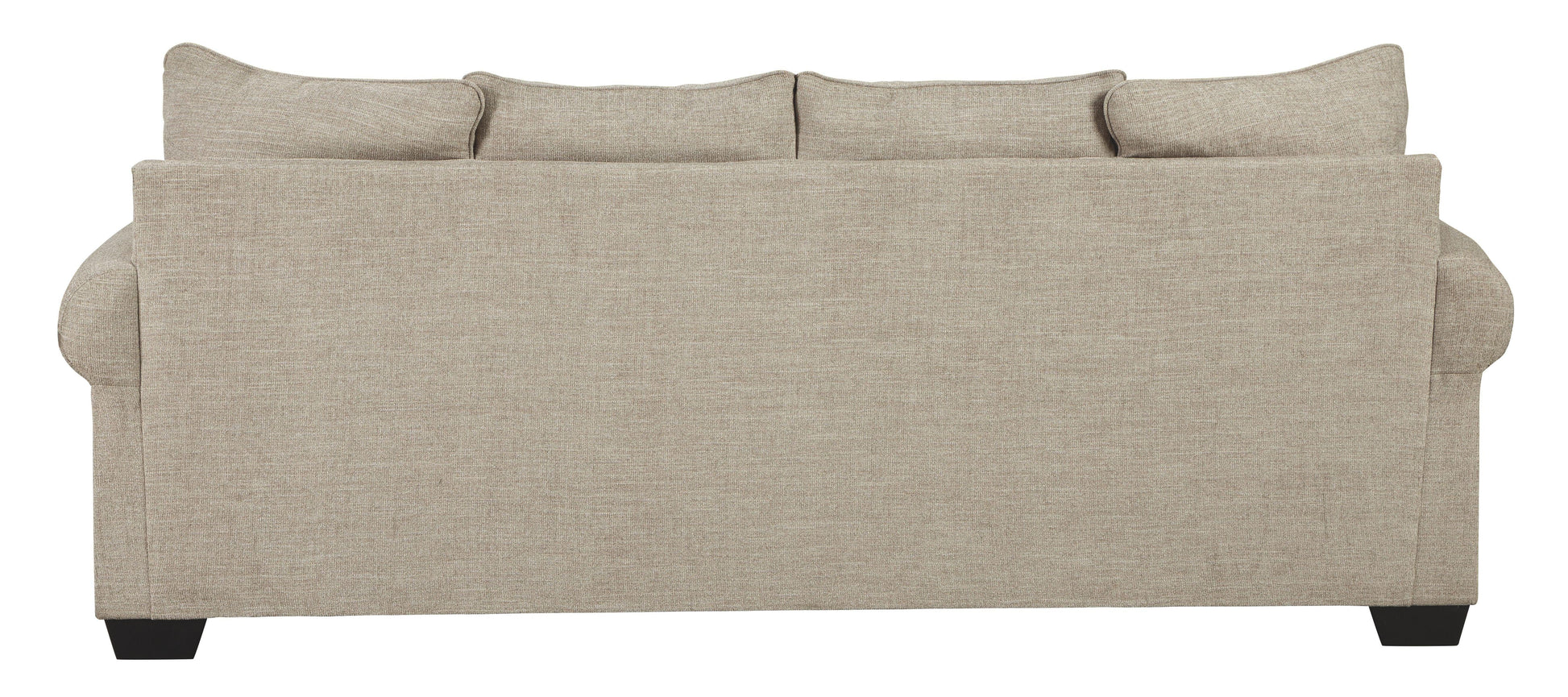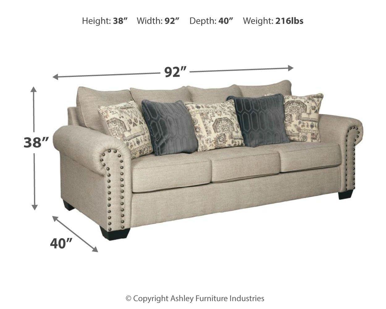 This sofa sleeper lets you make a high-style statement at a comfortably affordable price. Richly traditional roll arms are given a modern punch care of oversized nailhead trim in a black nickel-tone finish. Linen-weave upholstery in fresh and clean sandstone beige is complemented with designer pillows that add texture and sophistication. Pull-out queen mattress in quality memory foam comfortably accommodates overnight guests.