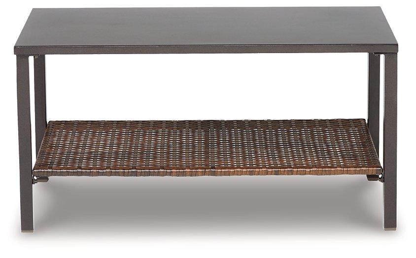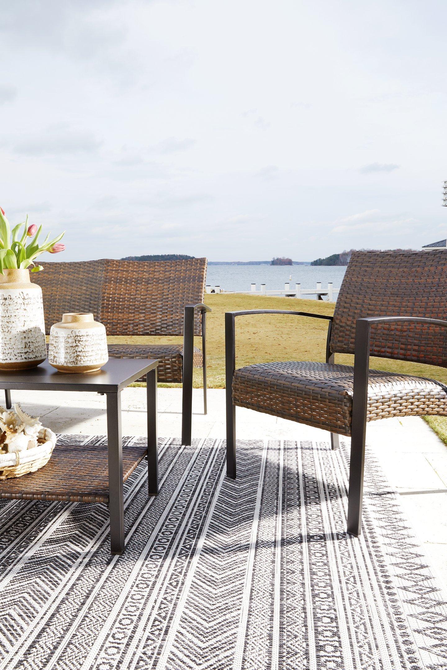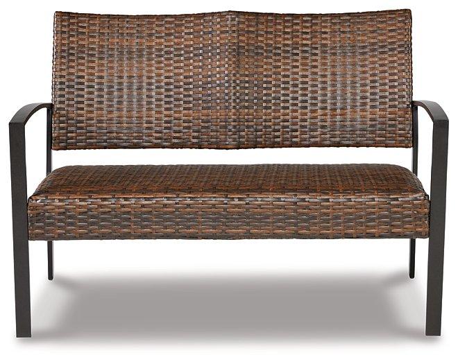 Zariyah Dark Brown Outdoor Love/Chairs/Table Set (Set of 4)