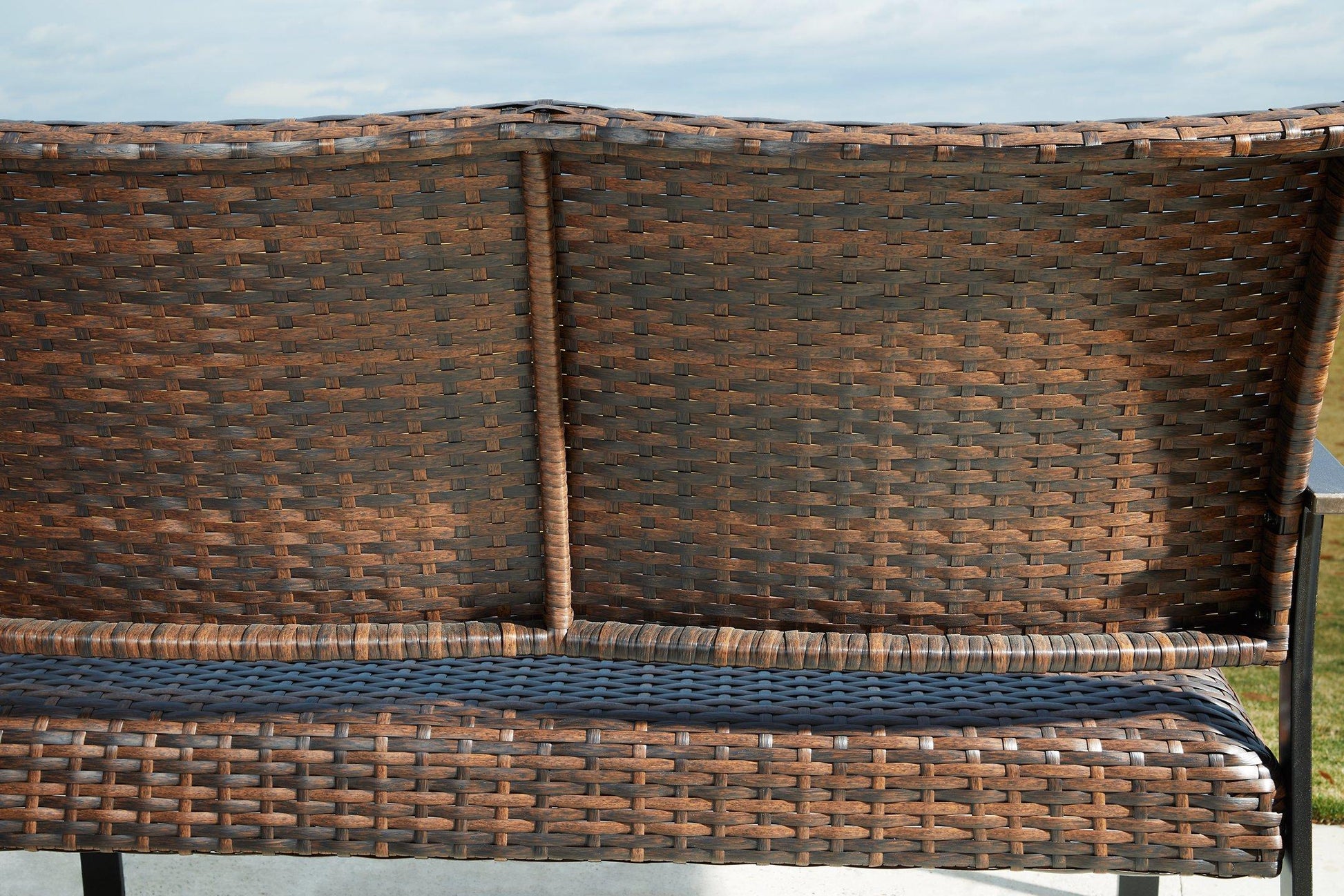 High style crafted for low-maintenance living. Turn your outdoor space into a sweet retreat with this seating ensemble. This decidedly clean and contemporary furniture set entices in easy-breezy brown resin wicker over a steel frame, for an upscale aesthetic that's downright durable. With a layer of foam under the seat for extra comfort, there is no need for cushions. Dark brown seats are easy to clean and so carefree.