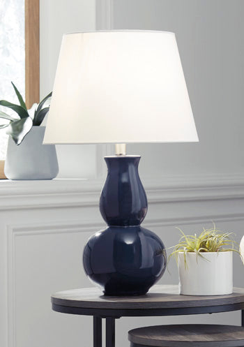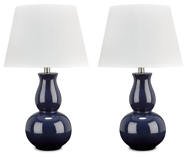 Soft lines and a curvy profile give a stylish look to this ceramic table lamp set. The glossy finish is paired with metallic details and topped with a white empire shade.