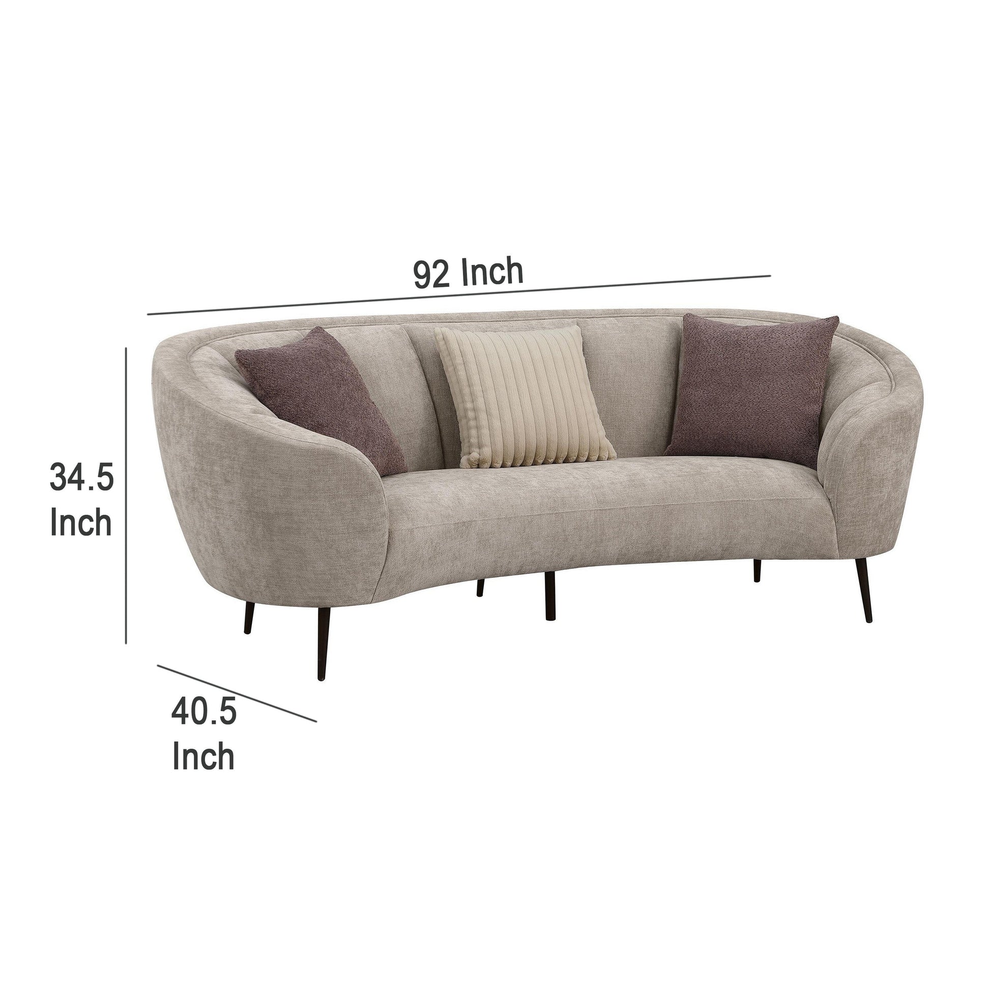 Zui Curved Sofa, 92 Inch, Beige Fabric, Round Design, 3 Accent Pillows