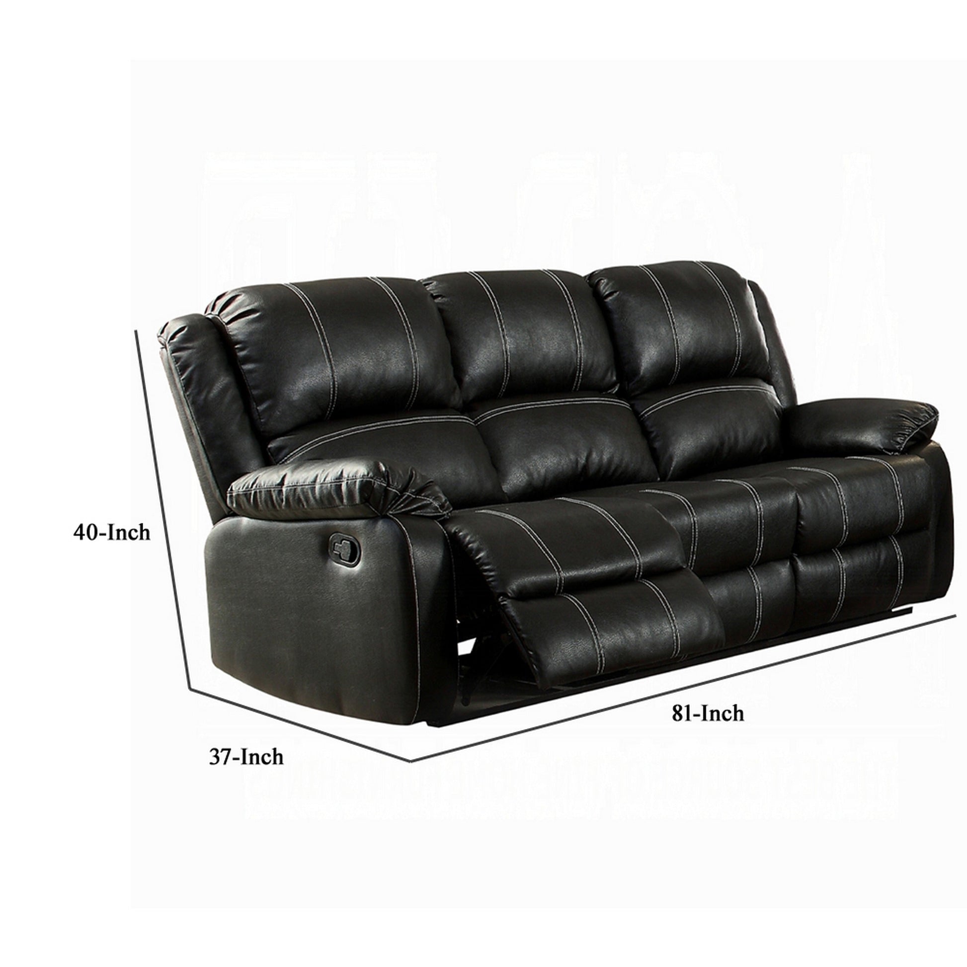 - Black finished faux leather upholstery for a plush seating experience